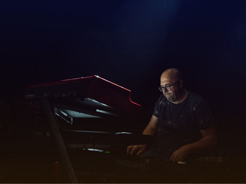 Christophe Vande Vyvere is een all-round toetsentovenaar die in zijn prille jeugd ook al deel uitmaakte van Perfect Strangers. Het spel van Christophe geeft precies waar nodig invulling aan de subtiliteiten die vele nummers net dat extra geven. Of we nu piano horen, dan wel meegevoerd worden in een elektronisch klankenuniversum, of de klank nu prominent op de voorgrond dan wel subtiel op de achtergrond speelt, of er diepe subs dreunen dan wel fijne tweets fluiten, hij doet alles kloppen.